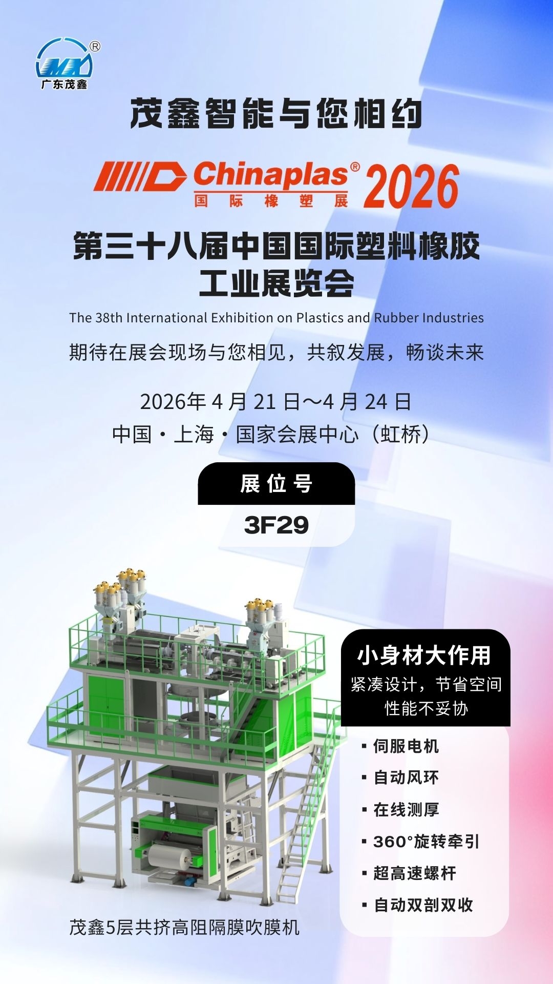 2026年雅式上海國際橡塑展于4.21-24日舉行,鑫茂智能邀請您到場參觀。
